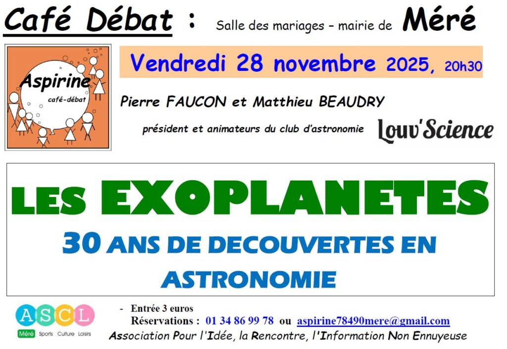 LES EXOPLANETES – 30 ans de découvertes en astronomie par Pierre FAUCON et Matthieu BEAUDRY, respectivement président et animateurs du club d’astronomie de Louv’Science.